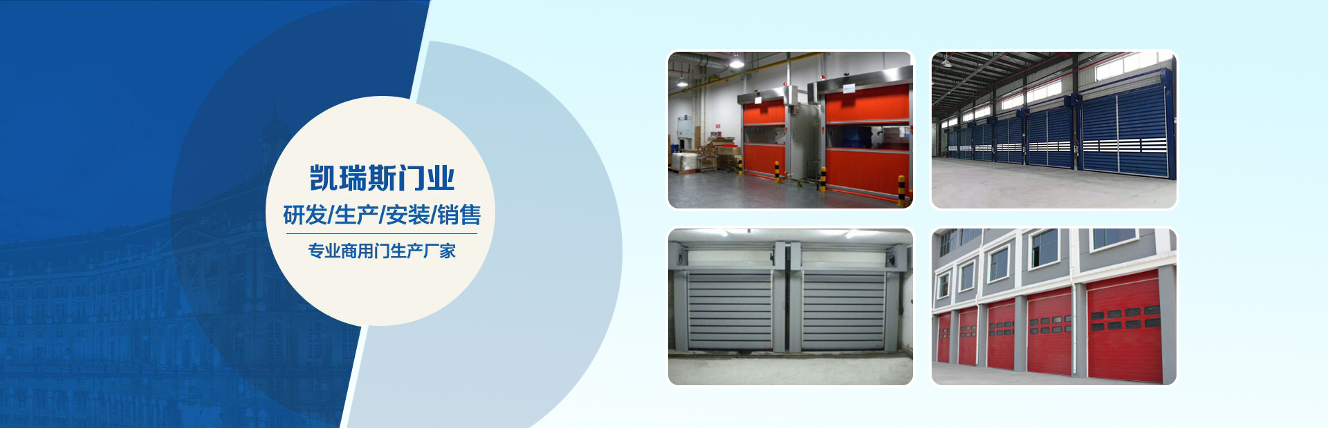 無錫凱瑞斯門業有限公司是一家專業從事工業門的設計研發,生產銷售和售后為一體的企業。         公司主營:快速門、快速卷門、快速卷簾門、快速軟簾門、快速提升門、快速堆積門、大型快速堆積門、硬質卷簾門、大型抗風門、工業滑升門、工業自動卷簾門、自動感應門、工業平移門、車庫門、無軌懸浮門、伸縮門、風淋室快速門以及在氣
